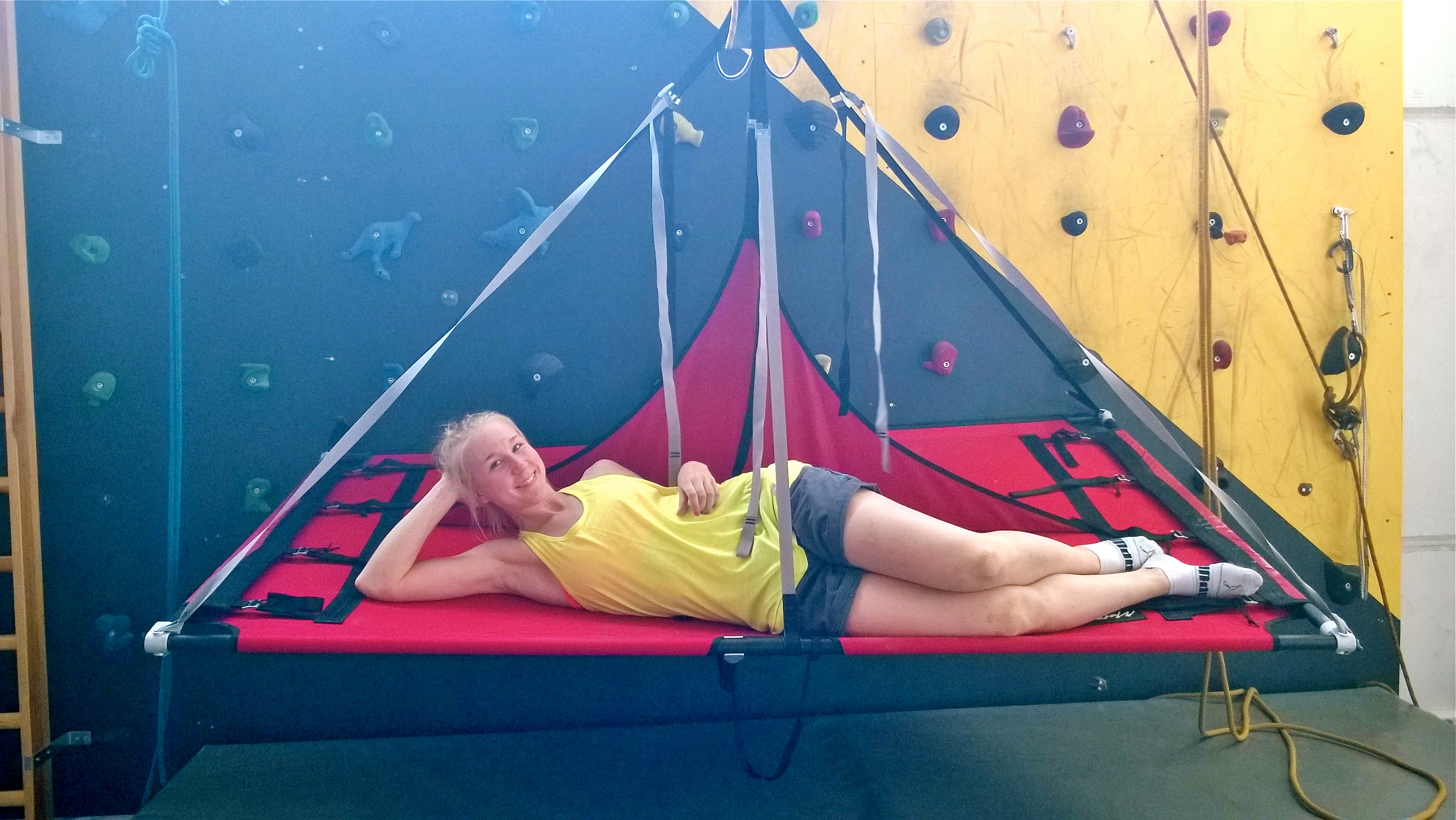 I’m happy as long as I have the option for both indoor and outdoor climbing. Here are a couple examples of what me and my friends do for fun indoors. Please, always consult the staff before rigging setups like these in the gym. Cheers!