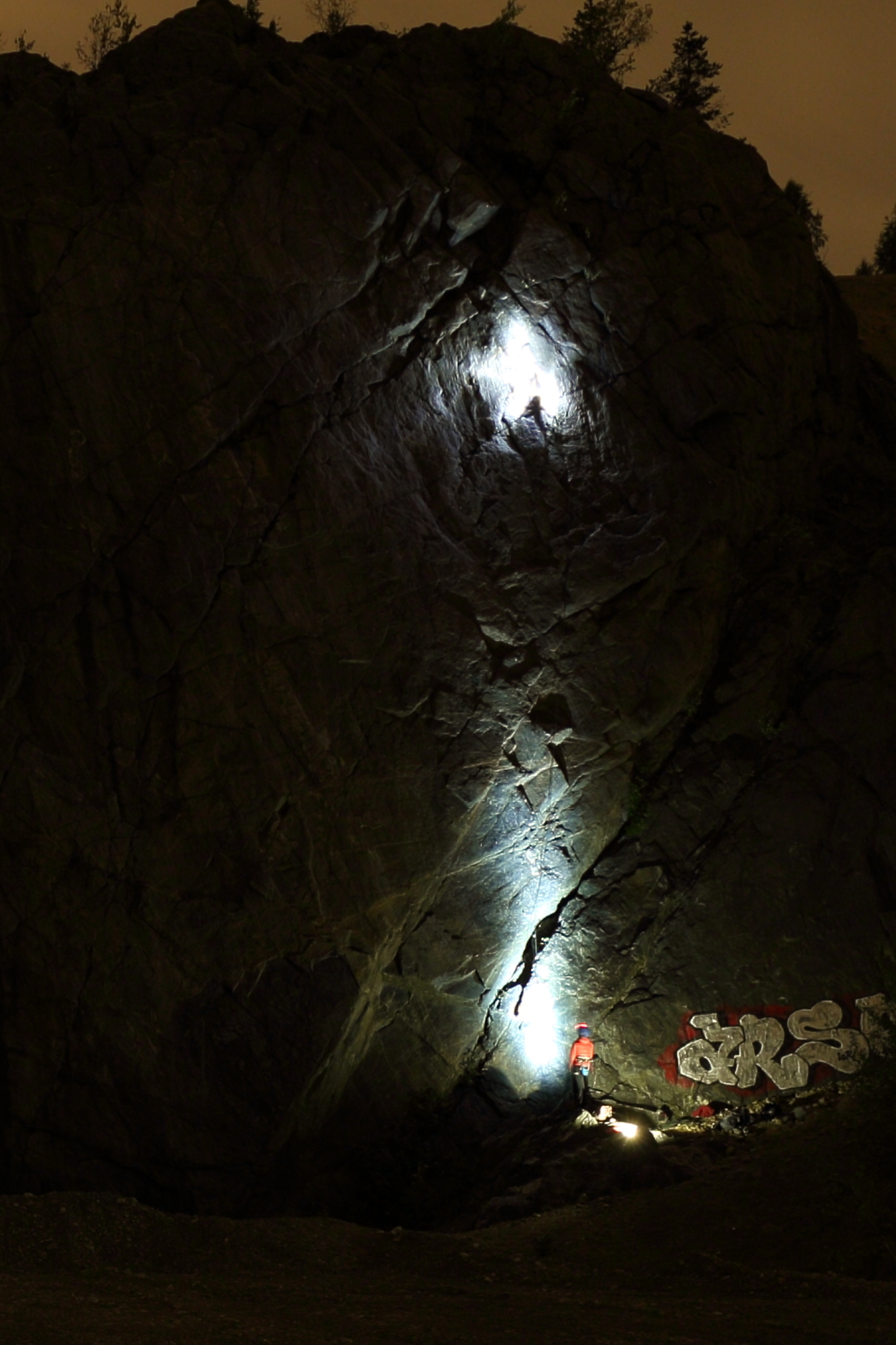 The highlight of the day was actually the night. We bailed from Melo because it was pouring rain. At Mustavuori we had a light drizzle. Jere asked if he could come and take photos of us climbing in the dark. Absolutely! Thank you for sharing the photos Jere.