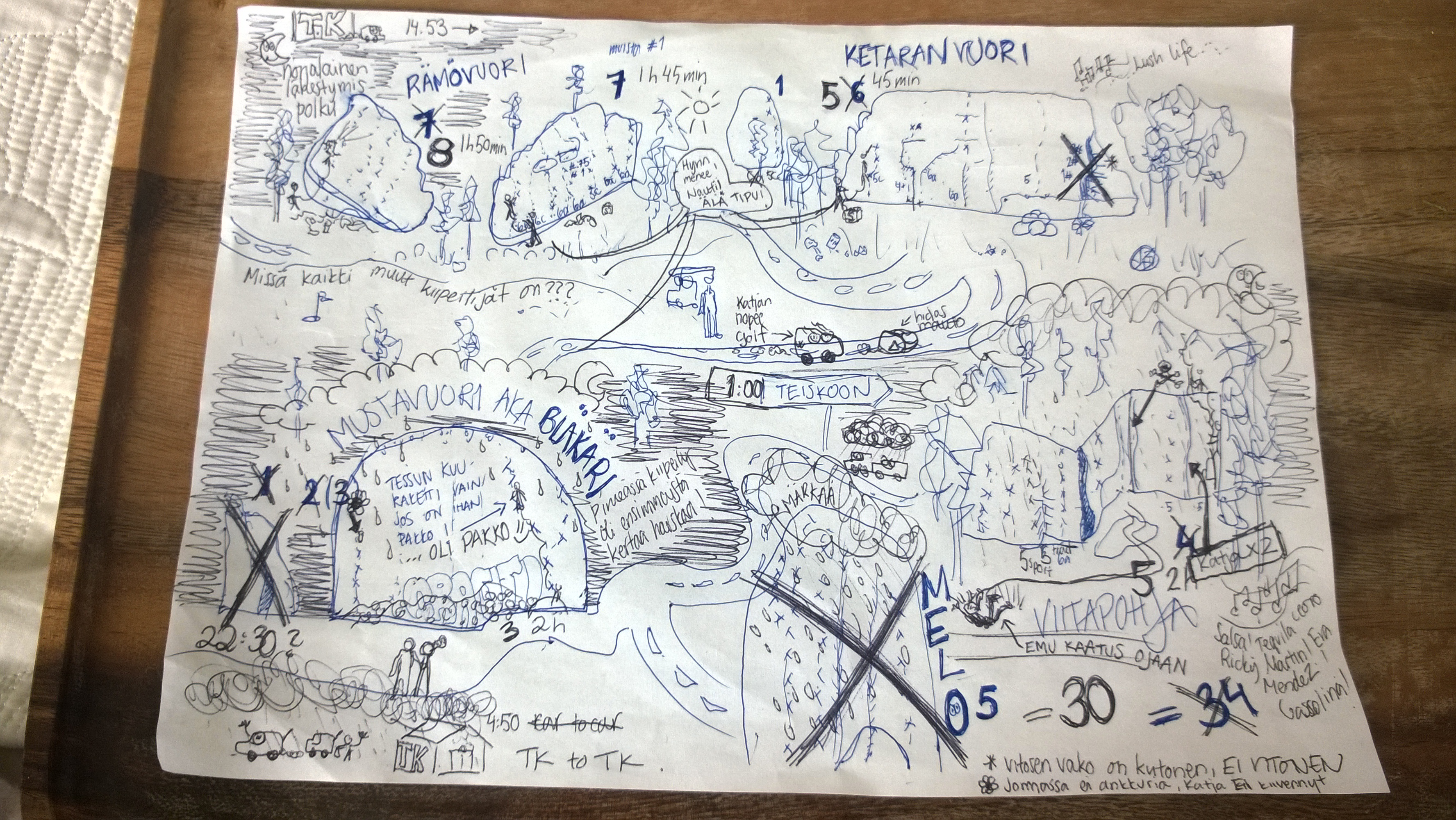 After it got dark we had eight routes to go. We knew we have until 4am until it starts raining so we decided to take it easy. It took us 45 minutes to climb six routes at Ketara in the daylight and two hours to climb three routes at Mustavuori in the dark. Climbing in the dark is usually avoided at all cost but this time it was exciting and fun.