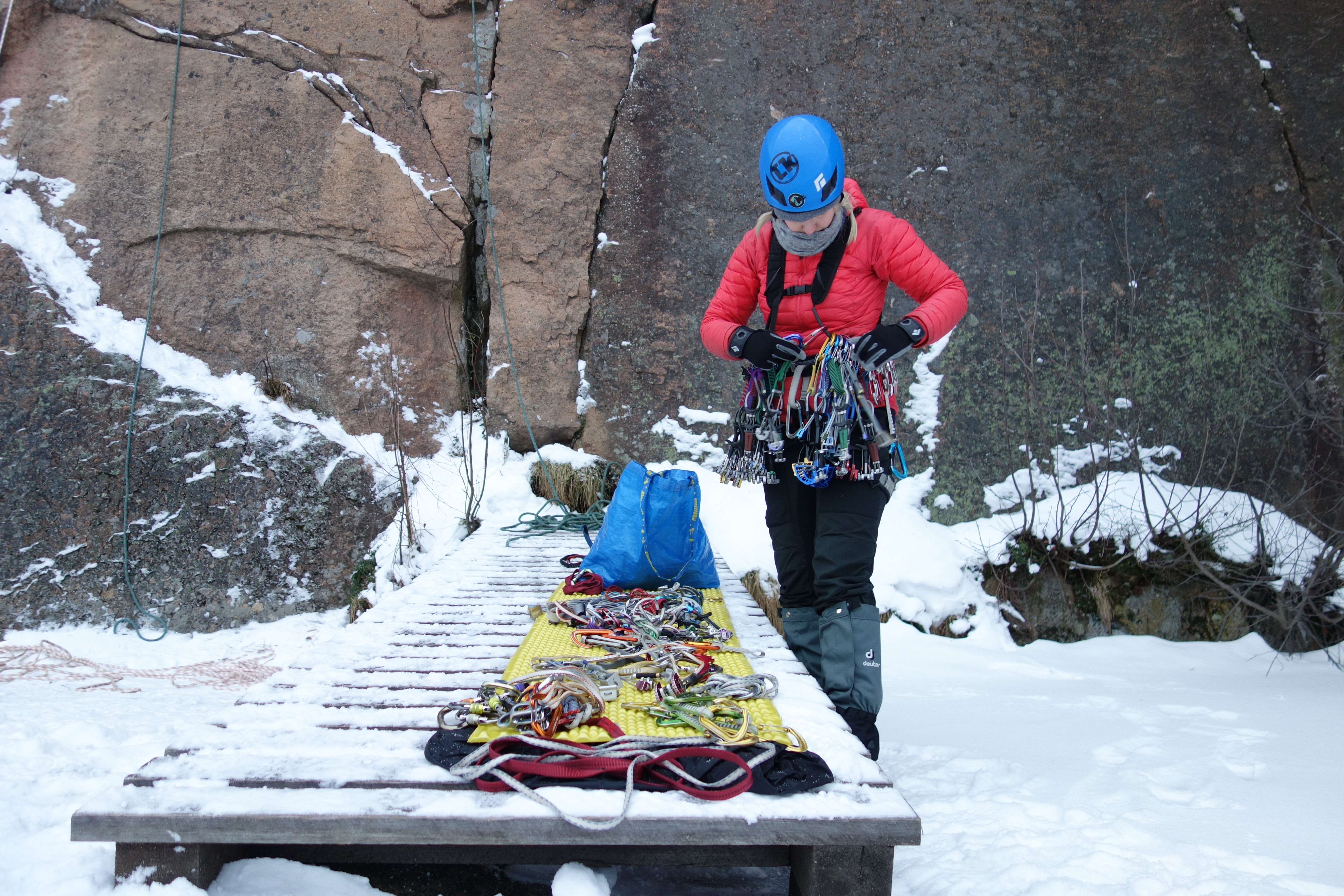 Emma climbs rocks
